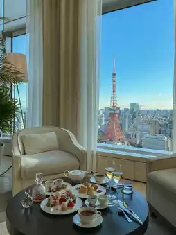 Lobby bar on the 31st floor in a wonderful location, surrounded by greenery and overlooking Tokyo Bay and Tokyo Tower from high ceiling windows