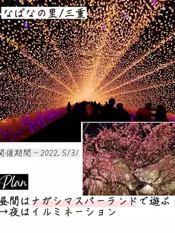 Nabana no Sato is highly recommended because you can enjoy not only illuminations but also flower illuminations.
