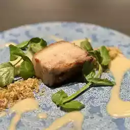 ※Roasted pork belly with herb breadcrumbs and blue cheese sauce