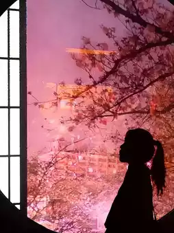 The entire space is filled with wonderful artistic presentations, such as works depicting rows of cherry blossom trees and works depicting spring-like Japanese scenery with weeping cherry blossoms and waterfalls๐ซง