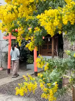 When the cherry blossoms and mimosas are not in bloom, Kuramae Shrine is a quiet shrine where few people stop by unless they are there to worship.