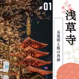① The five-story pagoda and cherry blossoms at Sensoji Temple