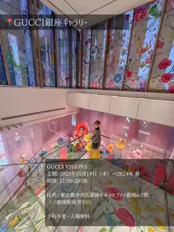 GUCCI VISION💐, which is being held at the Gucci Gallery that opened in June, is free, but it's so worth seeing✨I was completely immersed in the world of GUCCI...🫣Each section has a theme, so I've summarized it briefly♡It's only on until spring, so save it and go and visit! ─────────────── ✍️Room Introduction─────────────────⭐️ "TRAVEL" RoomThe entrance where valuable archive items are lined up. The founder aimed to create beautiful luggage with the most elegant design features for travelers✨⭐️"ICONS" RoomFour handbag lines, and over 300 bags lined up...! It's a masterpiece✨⭐️"CRAFTSMANSHIP" RoomA space that recreates the research and development center "Gucci ArtLab"! I saw how bamboo handles are processed for the first time! ⭐️ "STARS" Room The dresses worn by celebrities around the world are beautiful😍⭐️TIMELINE (Stairs) On the stairs leading from the 6th to the 7th floor, there is a timeline of Gucci's history, which spells out the history of Gucci♡⭐️ "CODES" Room There are also many archives here. Just looking at them will not make you bored. ⭐️ "FLORA" Room A space where you can immerse yourself in the world of "Flora", a flower illustration💐 You can go out to the terrace before sunset! ─────────────── ⚠️ It seems that you can go out to the terrace before sunset when the weather is good! We couldn't go in the evening -💦 Please go during the day! ─────────────── 📍GUCCI VISIONS Gallery, GUCCI Ginza Period: Thursday, October 19, 2023 - Spring 2024 Time: 11:00-20:00 Address: 6th-7th floor, Gucci Ginza, 4-4-10 Ginza, Chuo-ku, Tokyo (⇒ 3-minute walk from Ginza Station) No reservation required, free admission ────────────────