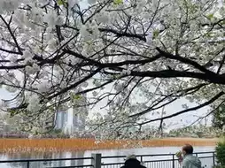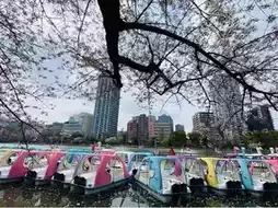 In spring, many varieties of cherry trees bloom together, turning the entire park into a sweet pink color, contrasting with the bright blue sky. It's so beautiful that it melts your heart. It feels like you've stepped into an anime.