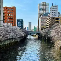 The cherry blossom line of Meguro River stretches for about 4km from upstream to downstream, and in spring, about 800 Somei-Yoshino cherry trees surround it with a pink veil. Many tourists visit every year. It is the number one cherry blossom viewing spot in Tokyo, so when the cherry blossom season comes, be sure to walk here and enjoy the cherry blossoms. #Sakura2024