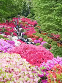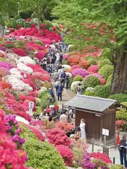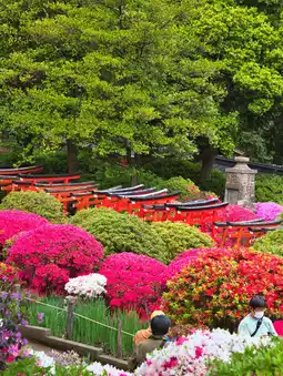 You often see azaleas in the city, but you don't see them spread out so beautifully, do you? You can see them in Tokyo! This time, I'd like to introduce Nezu Shrine in Bunkyo Ward, close to the University of Tokyo. There is also a place called Azalea Garden, where about 3,000 colorful azaleas are in full bloom! In addition, between the Azalea Garden and Nezu Shrine, there is Otome Inari Shrine, where there are rows of red torii gates, like those seen at Fushimi Inari in Kyoto. The collaboration between the azaleas and the torii gates is very beautiful and photogenic. As of April 11, they are just starting to change color, and it looks like they will be at their best from now on. Azaleas bloom at different times depending on the type, such as early, mid, and late blooming, but the best time to see them is around next weekend. I wonder if they will be at their best next weekend? The Bunkyo Azalea Festival is being held from March 30th to April 30th 🎉 Azalea Garden・Entry period: March 30th to April 30th・Opening hours: 9:30am to 5:30pm・Fee: 500 yen *Payment method is cash only・Note: Eating and drinking are prohibited inside the garden