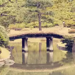 A representative Edo period feudal lord garden. The snow hangings and autumn leaves are a spectacular sight!