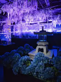 The Art Aquarium Museum GINZA, a permanent fixture at Ginza Mitsukoshi Department Store, has returned with an even more powerful summer exhibition! This summer's exhibition features a fantastical space where goldfish swim, but is now even more beautiful with the addition of lustrous wisteria and hydrangeas to add to the gorgeous atmosphere✨