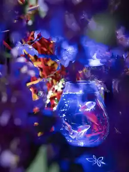 The space is dyed in purple and ultramarine colors, and the fantastic sight of goldfish swimming there gives a sense of Japanese beauty. 🥰