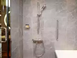 The bathroom facilities are luxurious and clean, with a bathtub and shower cubicle, providing a comfortable bathing experience. A wide range of high quality toiletries made me feel right at home.