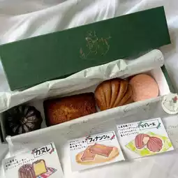 Assorted baked goods Financier 340 yen Madeleine 340 yen Canelé 400 yen Strawberry macaron 360 yen The introduction card with the illustration is also cute
