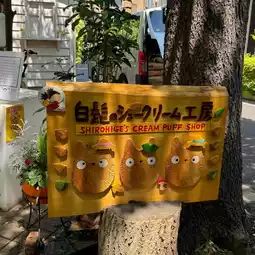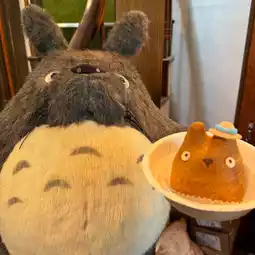 Officially approved by Ghibli! Shirohige's Cream Puff Factory is a very popular shop for Totoro cream puffs. There were many Totoros displayed inside the store.