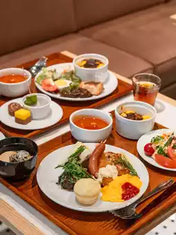 Breakfast is served buffet style at the Western restaurant Ginza Lamptei on the first floor, with a wide selection of main-course meals!! Hamburg steak, fried shrimp, omelet rice,