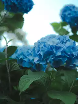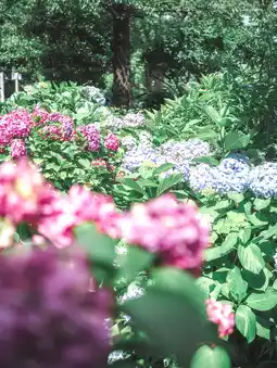 Hydrangeas are blooming along the side of the tracks from Oji Station