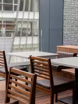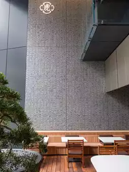 The interior was designed by Hiroshi Naito and the terrace seats with a void are the highlight of the space.