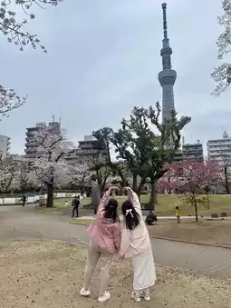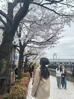 There is an overpass that takes you directly to another large cherry blossom forest on the opposite side.
