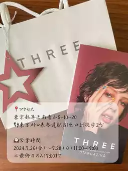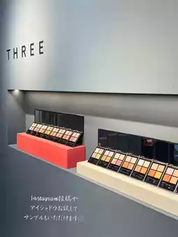 I went to the THREE pop-up event that is being held for a limited time only from 7/26 (Fri) to 7/28 (Sun)!!! I happened to pass by this event when I was in Omotesando and found out about it, so I went yesterday, the first day! No reservations needed, and admission is free! In this stylish and cute space, you can try out the new eyeshadows that will be released from 7/31 onwards, and you can even get samples, so you'll want to try THREE! For me, who had been curious about it, it was a really happy event 🙆♀️