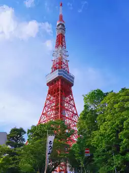 Tokyo Tower has a large observation deck at 150 meters and a special observation deck at 249.9 meters, from which you can see Mount Fuji in the distance on a clear day.
