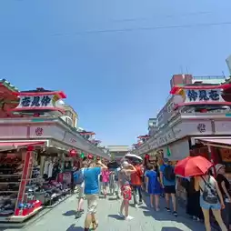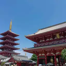 Sensoji Temple, also known as Asakusa Temple or the Red Lantern Temple, is a must-see temple in Tokyo's Asakusa district. This ancient Buddhist temple is revered by locals, Japanese, and tourists alike, where visitors can pay their respects, pray, and take photos. The temple's many shops dot the alleyways, offering a wide selection of food and souvenirs, all iconic to Japan. In front of the temple, you can also find a Japanese-style buggy, or take photos with Tokyo Tower, the golden poop-shaped building, and the foam of Asahi beer.