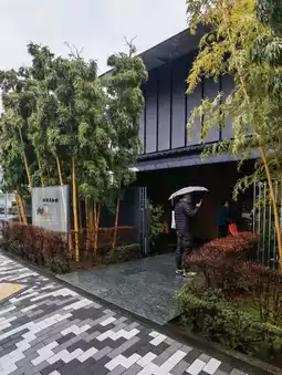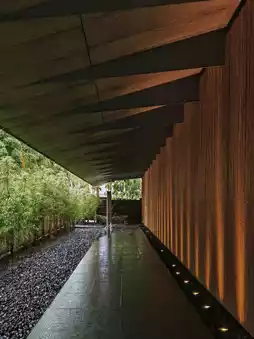 One side of this eaves corridor is living bamboo, which separates the noise of the street; one side is a bamboo curtain wall, and the classic Kuma-style routine creates the beauty of the space. The emergence of the corridor makes two turns into the art gallery, lengthening the foreground space several times. In this way, a space for people to gather and buffer is left in front of the art museum. 🏖️🏖️