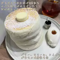 Fluffy and jiggly pancakes served in a stylish white-themed restaurant🥺🥞