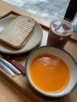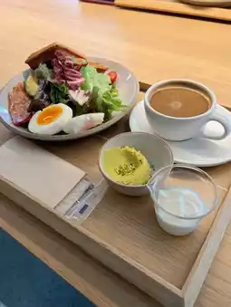 The location is particularly helpful for a break tol. If you are exhausted from the roaming and shopping around Harajuku to Shibuya. You can still stroll over to here and just take a break. The atmosphere was great and the staffs were friendly, and with a great smile. They provide English menu so donโt worry when you order. Credit card accepted as well. Upstairs is a lovely space too. If the weather permits try the outdoor seating. Food is decent too, I have trued numerous of their breakfast sets.