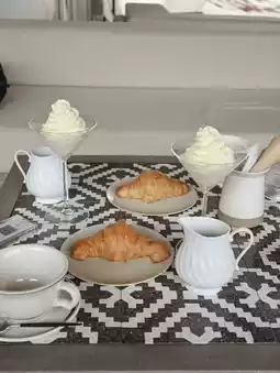 A cafe where you can enjoy a slightly luxurious French-style experience by dipping croissants in hot chocolate or adding whipped cream.