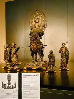 The Manjusri Bodhisattva Riding a Lion and the Standing Attendant are fascinated by the expressions and movements of each statue, but when viewed from the side, it looks like a halo is piercing Manjusri Bodhisattva. The halo is facing forward, but...