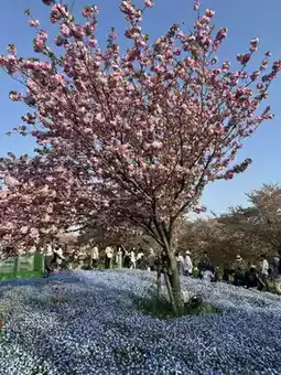 At Toneri Park, you can enjoy cherry blossoms and nemophila at the same time ✨