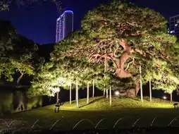 A strolling garden with a variety of landscapes, the magnificent branching of the "One Pine" and the "Horai Island" that represents the wish for eternal youth and longevity create a fantastic space when combined with the night lighting ✨