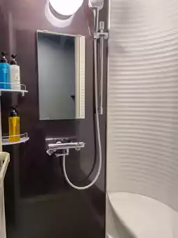 The bath and toilet are separate, but the bathroom in the room only has a shower.