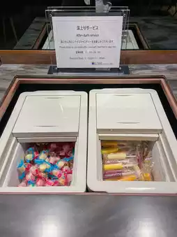Free popsicles and massage machines after the bath.