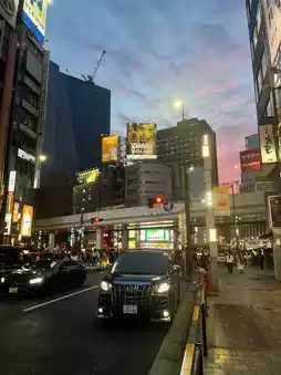 As we continued our journey toward Roppongi, the day began to transition into evening. The walk to Roppongi, about 20 minutes from Tokyo Tower, was highlighted by a spectacular sunset that painted the sky in golden hues. The city’s skyline seemed to come alive under the soft light, with buildings like the Mori Tower standing tall and reflecting the fading sun. Roppongi, known for its vibrant nightlife and art scene, was slowly transitioning into its evening rhythm, with the glow of the sunset adding a serene touch to the bustling city.