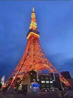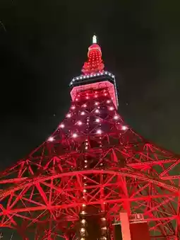 A bright red tower shaped like the Eiffel Tower, located in Tokyo, Japan. It is 332 meters high from the ground. It is a tower used to transmit television signals. It is another landmark of Tokyo. In the past, this tower was known as the tallest tower in Japan. However, it has now been beaten by the Tokyo Sky Tree.