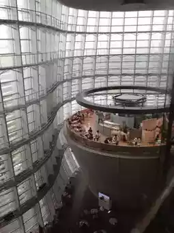 This area is an independent space with a cafe, library, and restaurant. You can come in and take pictures for free.