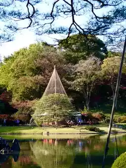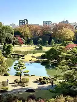 A representative feudal lord garden of the Edo period with a stroll-style hill and pond.