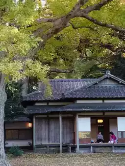 At Fukiage Teahouse in the garden, you can enjoy matcha while looking at the pond.