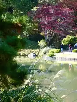 about 400 Japanese maples, enkianthus campanulatus, ginkgo trees and other trees that turn red, totaling about 560 trees, brightly colored the garden. You can enjoy the autumn leaves in the mountains, the pond, and all around the garden.