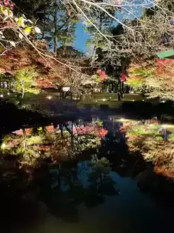 and the autumn leaves reflected on the pond's surface are breathtakingly beautiful💕💕