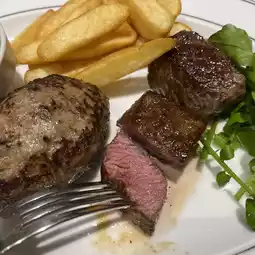 The steak is delicious, but the hamburger is round and fluffy, and really delicious, so I recommend it. 🩷