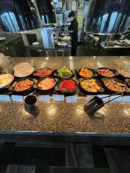 ・A buffet with a wide variety of dishes, including the specialty “Snow Crab Omelette,” soy sauce ramen, and sandwiches made with yeast