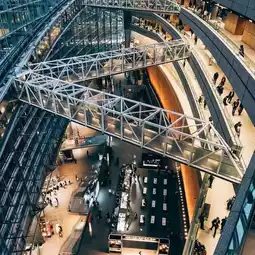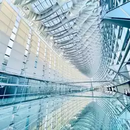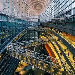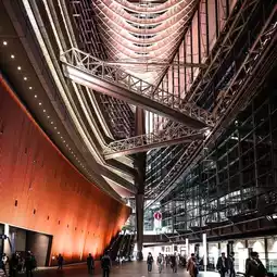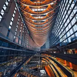 The overall shape of the Tokyo Forum reminds me of a dirigible or the inside of a whale, with the beams as the architectural ribs.