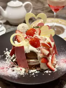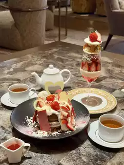 The Hudson Lounge on the first floor of the InterContinental Tokyo Bay is offering strawberry-themed pancakes and parfaits for a limited time.