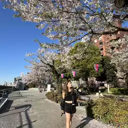 Today, Mui will take friends to travel in Japan. After sleeping for 1 night, in the morning, I woke up and went for a run at Sumida park Asakusa. You can start from the hotel. It's not far away. In the cool 5 degree weather, there are many people who come to run in the beautiful place. The sun is out, so it's not too cold. The park is now in April. When I arrived, the cherry blossoms were blooming on both sides of the road. There were a lot of cherry blossoms blooming. It's very beautiful. It's fun to look at. Coming in the morning is great because when you finish running, in the late morning, when you get on the subway, there are a lot of people taking pictures.