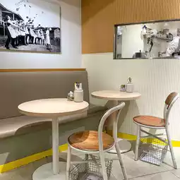The café's bright and cozy atmosphere makes it the perfect place to relax and enjoy a meal.