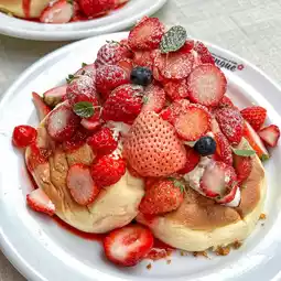 From winter to spring, they offer a special strawberry pancake that’s absolutely amazing. The combination of tangy strawberries and sweet toppings is a match made in heaven.