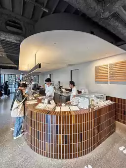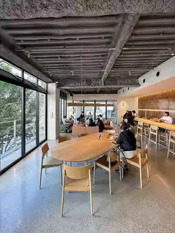 A lovely yet quiet branch of Blue Bottle in the middle of bustling Shibuya in Tokyo. The bar is located next to a small park where people can stop and relax with a fresh cool atmosphere. It's nice to enter the outdoor seating area in a sunny afternoon +.
