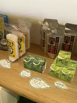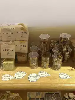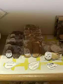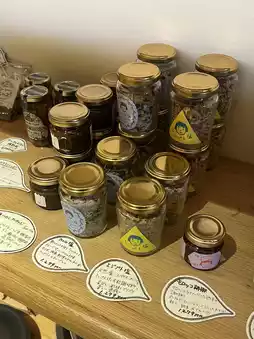 The lineup includes products that can only be found here in Tokyo, such as Zahara olive oil, coffee beans from Ooya Minoru's roastery, baked goods from Shobu Gakuen, Egyptian salt from Takahashi Yoshiko, Kabuki chocolate, Yoiko's red bean paste, and yeast bread from Munakatado in Okinawa.