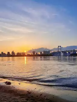 In the afternoon, we move to Odaiba Marine Park, a stunning spot where the city meets the ocean. The sun shines on the wide beach, and the Rainbow Bridge outlines the magnificent scenery of Tokyo Bay in the distance. I stroll along the seaside, feeling the sea breeze on my face, occasionally seeing sailboats pass by, adding a touch of leisure. Many people are flying kites, playing frisbee on the beach, and street performers are showcasing dynamic dances. At dusk, the sunset paints the sky a warm orange-red, and the shimmering sea waves bring this journey, where the city and nature intertwine, to a poetic close.
