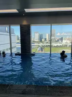 The hotel rooms have the atmosphere of a normal, clean business hotel, but the building has a gym where you can train while enjoying the night view, an indoor pool, and other facilities☺️💖